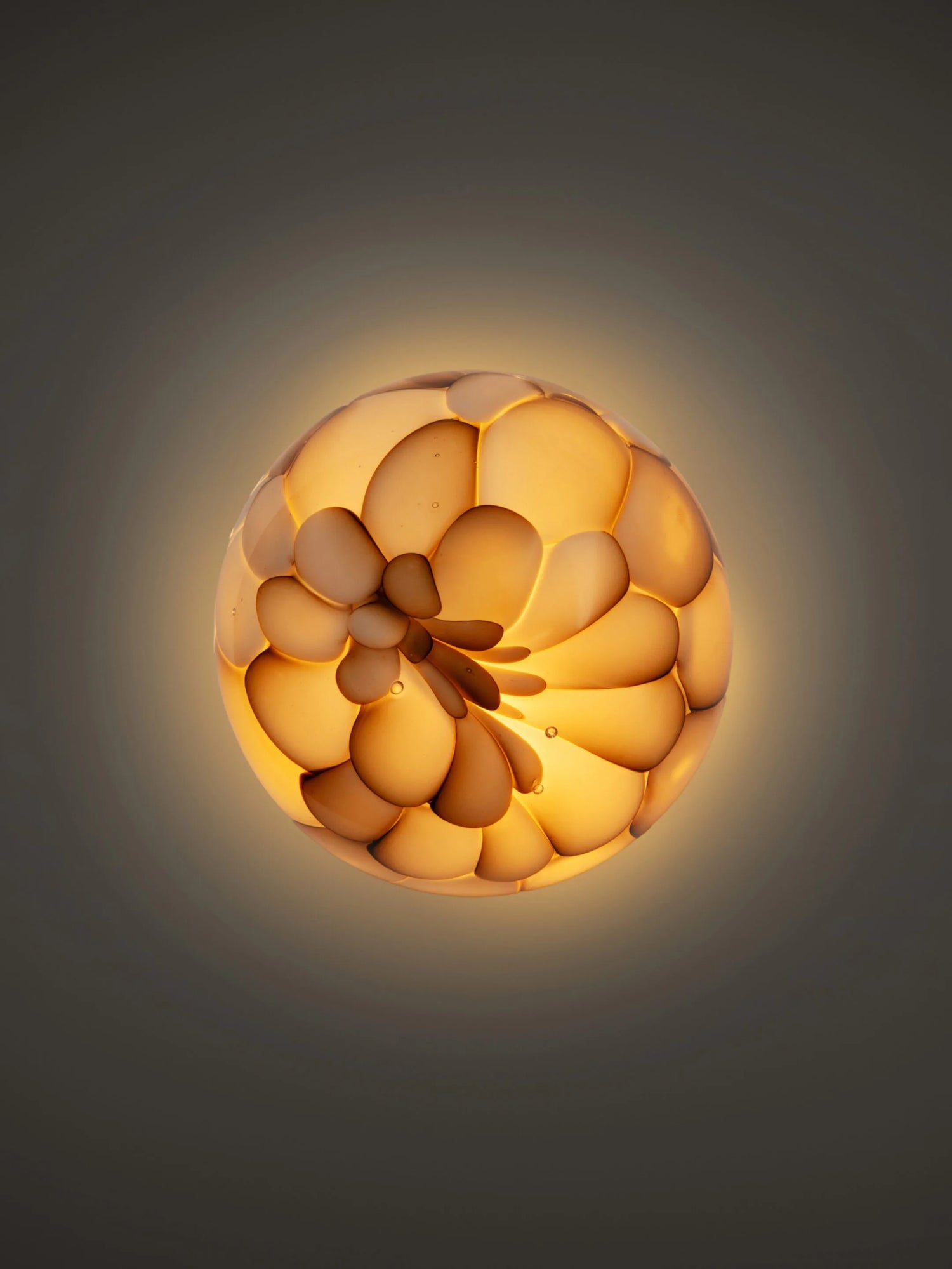 84Vsp is a single hand-blown glass pendant that can be wall or ceiling mounted. It installs over a junction box with an integrated power supply.