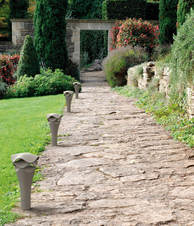 Cornet has a personality strongly rooted in nature. Its lines are harmonious and organic; it brightens the space it is in and it blends in with nature where there are no straight lines. The Cornet’s use is very versatile. It can provide direct lighting like a bollard or more extensive lighting for illuminating larger surfaces. Cornet includes a dimmable LED source that distributes light through the lamp's undulating layers, creating an atmosphere that is natural, slightly broken, but never dominant.