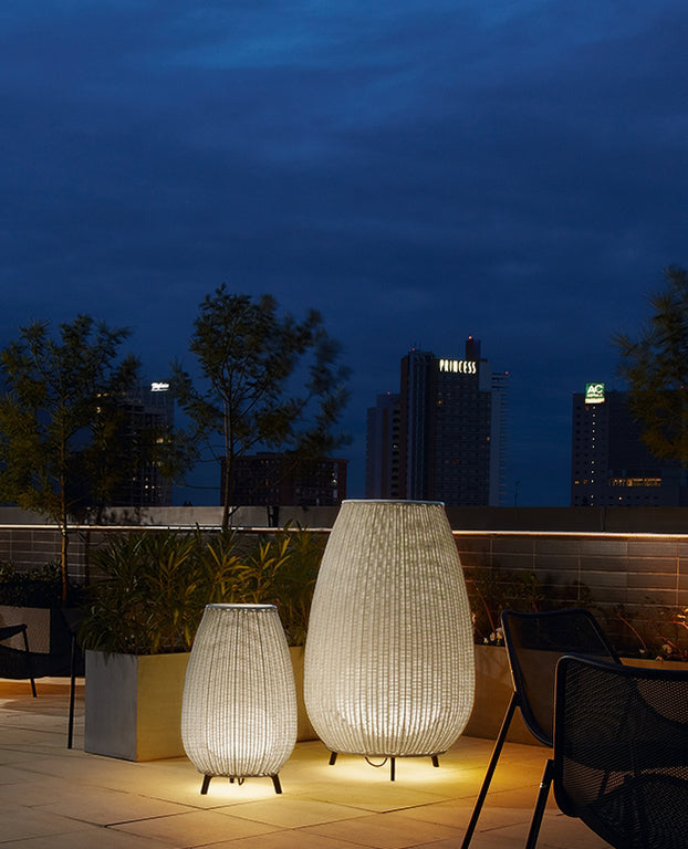 The Amphora collection was designed to create warm environments for the outdoors. However, thanks to its highly decorative appearance, the Amphoras are perfectly integrated both indoors as well as outside. Its shape and size pay a subtle and discreet tribute to the terracotta amphoras that were used in the past for food storage. The dimensions of this family of lamps are large, designed for big spaces. For this reason and collecting the feedback of our customers, we decided to expand the family with a new smaller size, suitable smaller spaces both inside and outdoors. Available in four sizes.