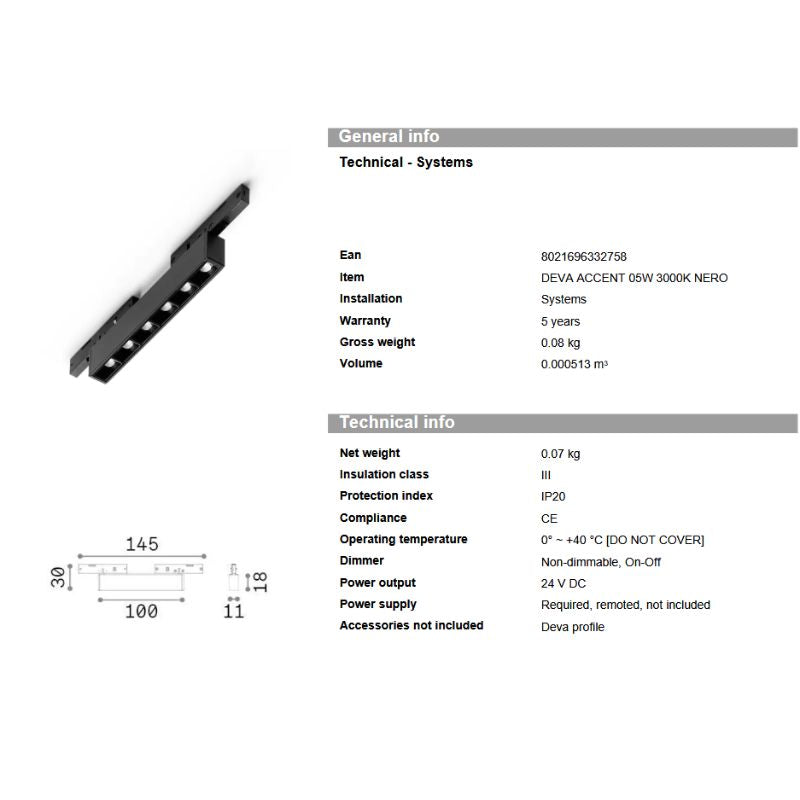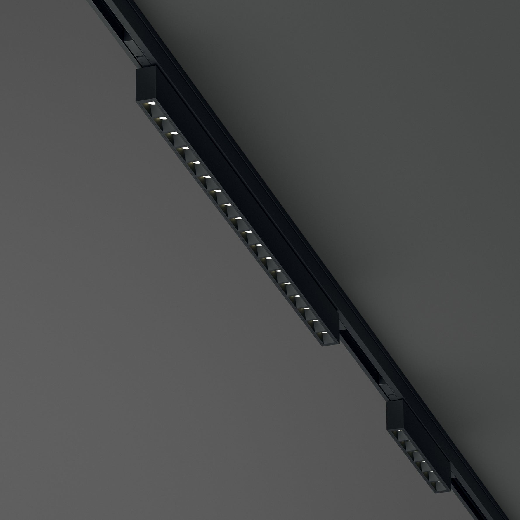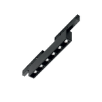 Linear system composed of an extruded aluminum profile and magnetic lighting fixtures. The system is available in coated or anodized matt black.