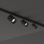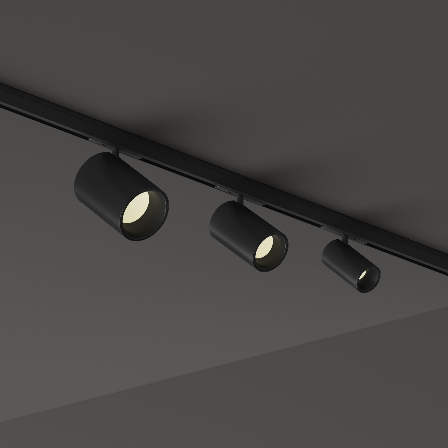 Linear system composed of an extruded aluminum profile and magnetic lighting fixtures. The system is available in coated or anodized matt black.