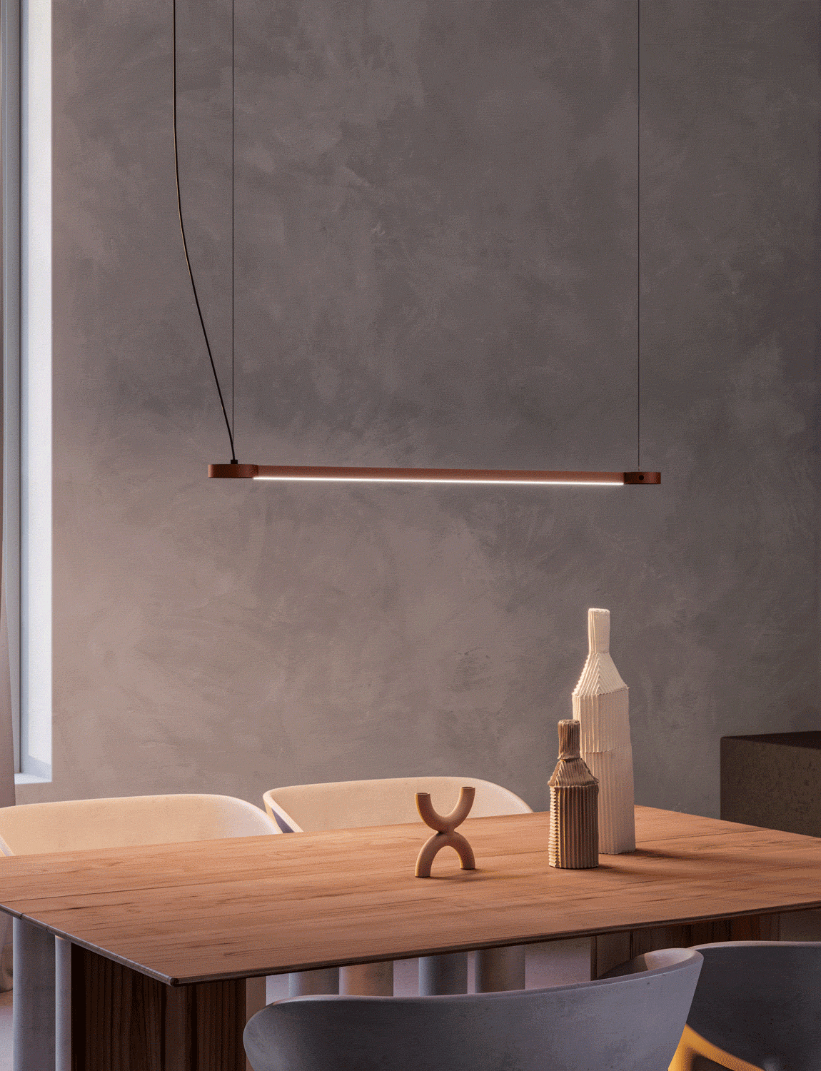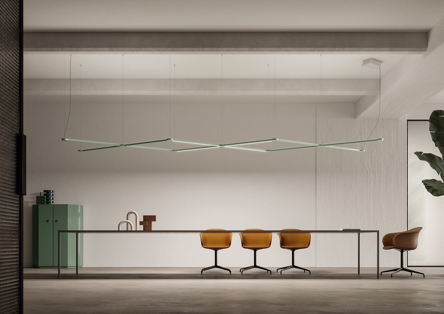 Essential graphic design and intense light. U-light expresses power and luminous efficiency emphasizing the aesthetic essence in a harmonious union that creates a strong presence in the space.