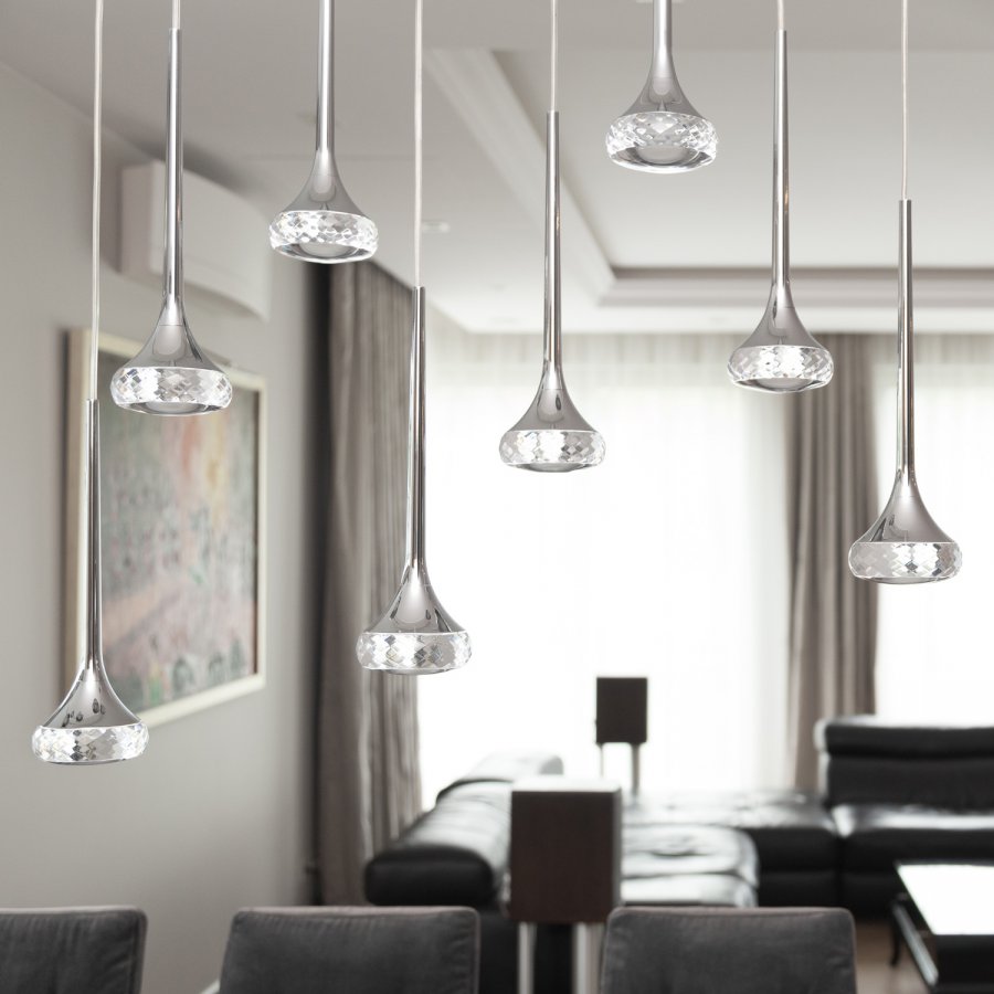 Fairy weaves multiple reflections and iridescent symmetries, creating an ever-shifting display of form and light. The clarity of aluminum meets the brilliance of crystal facets, producing a dynamic interplay where light refracts in a kaleidoscope of shimmering glows. Each angle reveals new dimensions, transforming the space into an engaging, luminous spectacle.