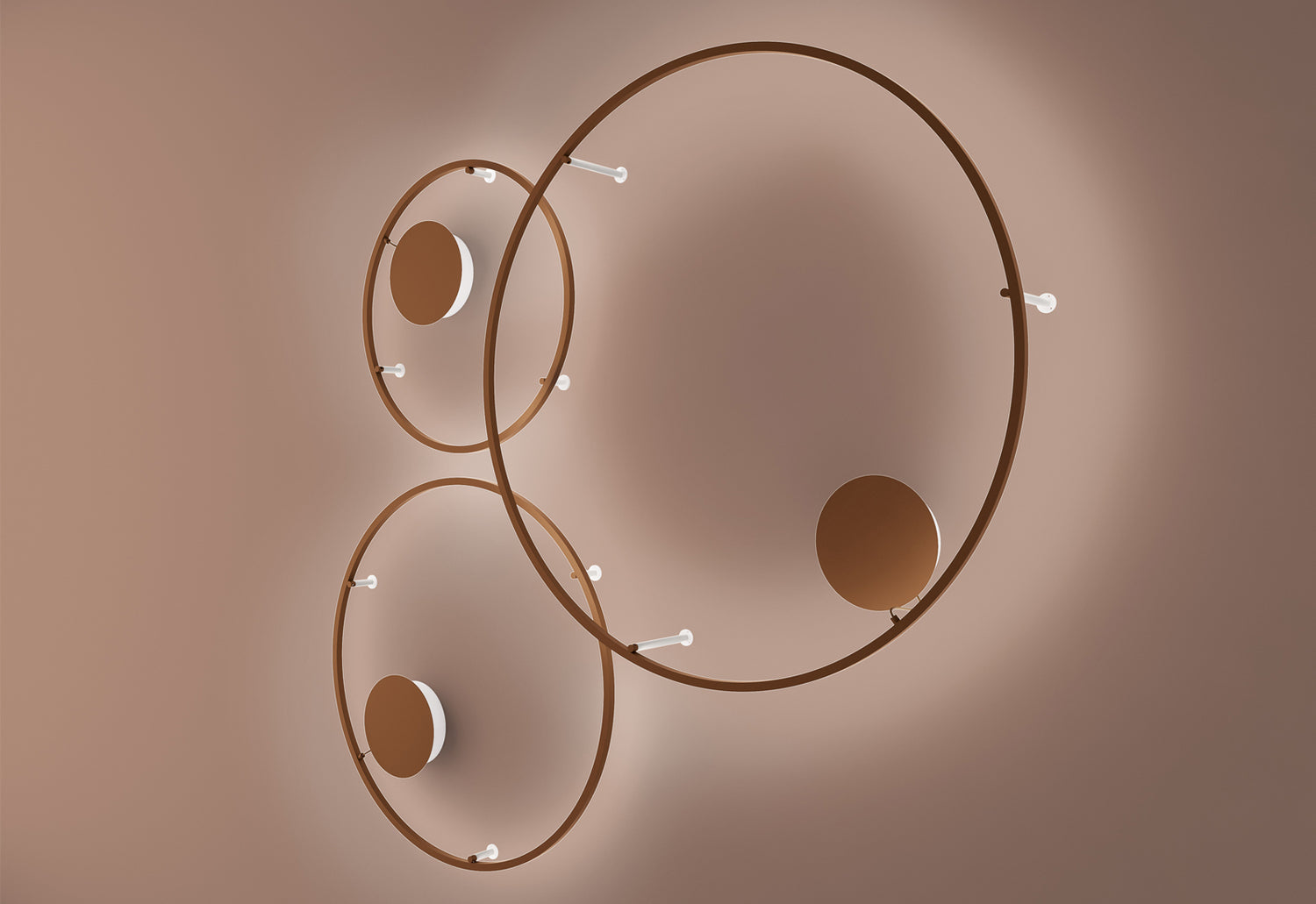 A few carefully chosen elements come together with effortless elegance, creating refined objects where attention to detail is paramount. Blown glass spheres transform into pure light, gently resting on colored metal discs that seem to float in space, while advanced technology operates seamlessly within.