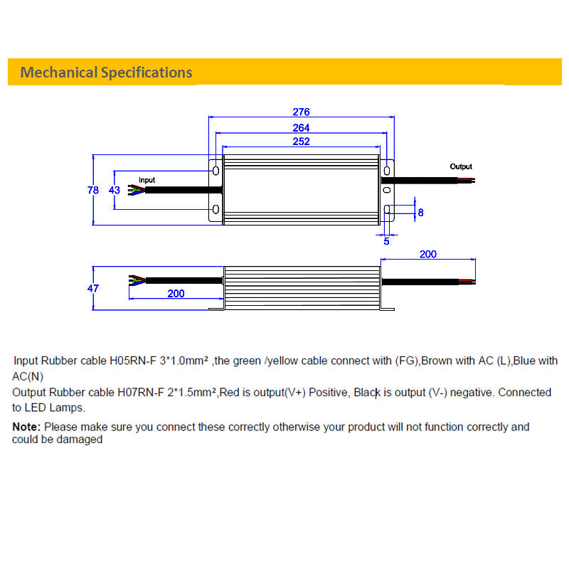 | Size (L×W×H) | 276 × 78 × 47 mm |