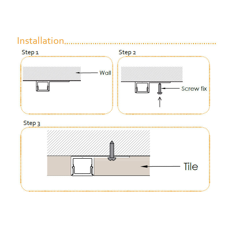 Product Description Aluminium LED profile with flange, recessed into 10mm tile or marble