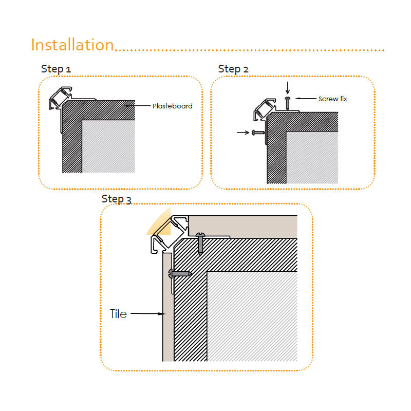 Aluminium LED Profile – Outside Corner (Recessed with Flange)