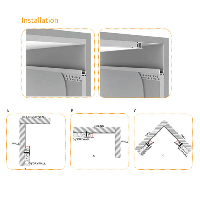 Product Details - Recessed Aluminium LED Profile for Drywall (with Flange Holes)