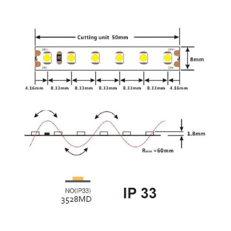 Led Tapes 24V LED Strip Light 9.6W/m – 3528SMD 120 LEDs/m LUK-D3120 -IP33