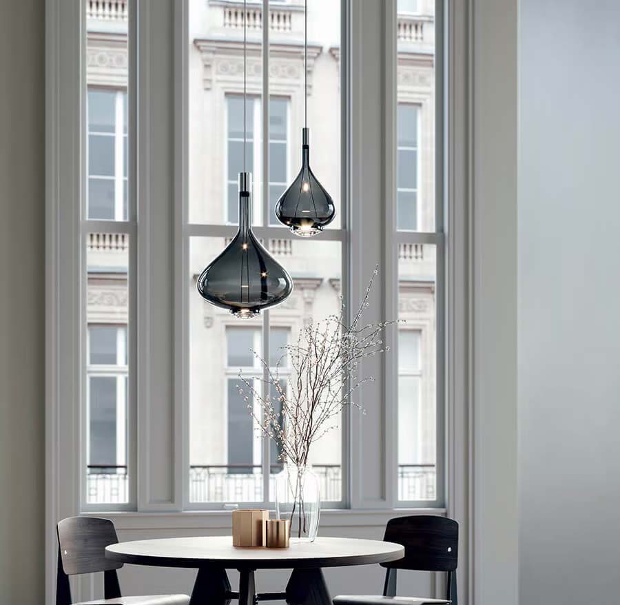 The Lodes Sky‑Fall pendant, crafted by Studio Italia Design (now Lodes), beautifully merges traditional glass-blowing techniques with cutting-edge LED innovation. Its elegant form is inspired by classic decanters, shaped from blown glass and framed in metal — creating a decorative piece that’s stunning whether it’s lit or not.