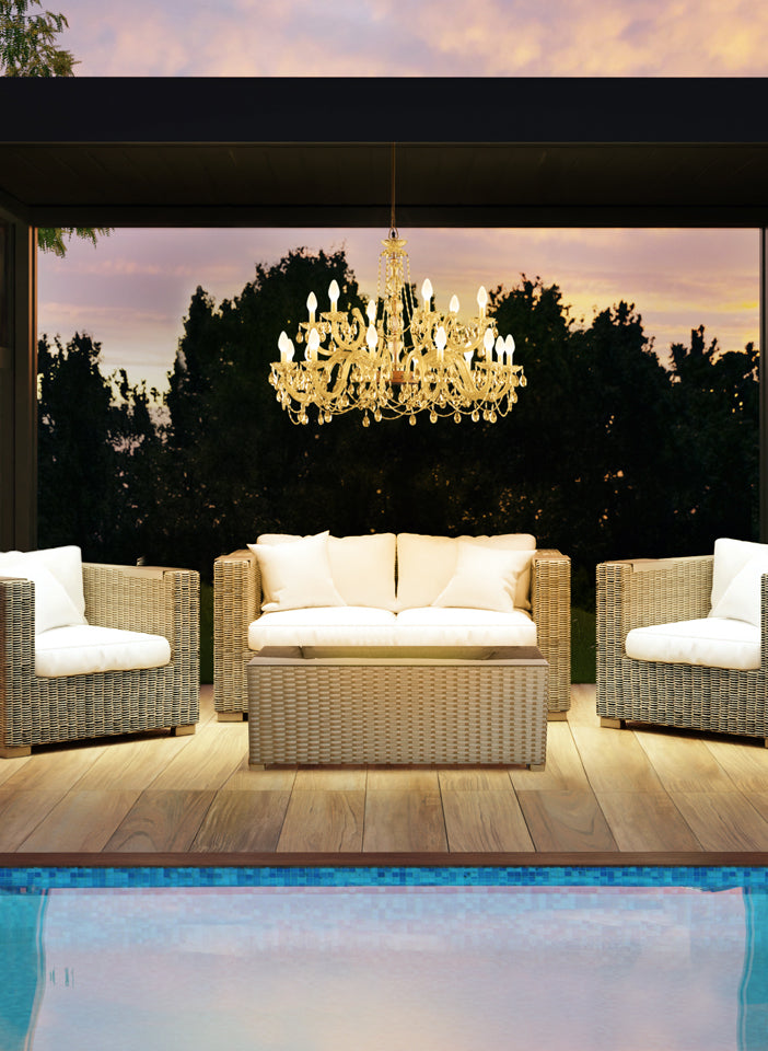 Drylight is an exclusive patented Masiero line reproducing the iconic Venetian chandelier for outdoor use.