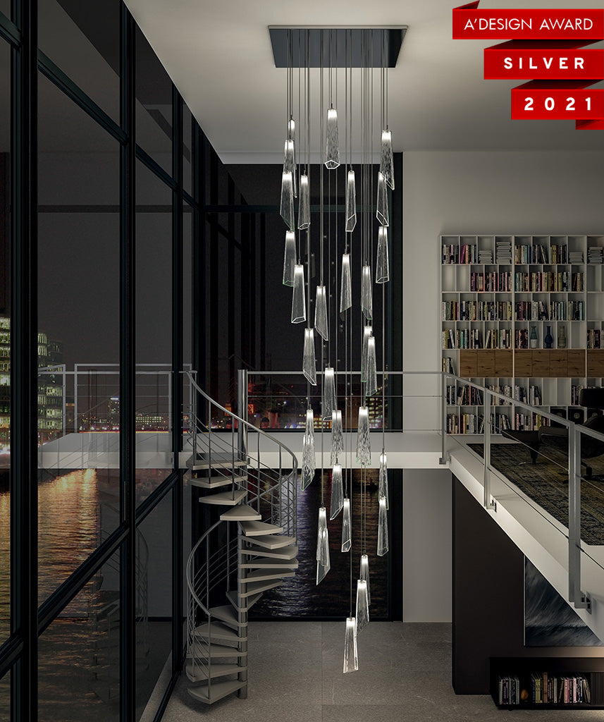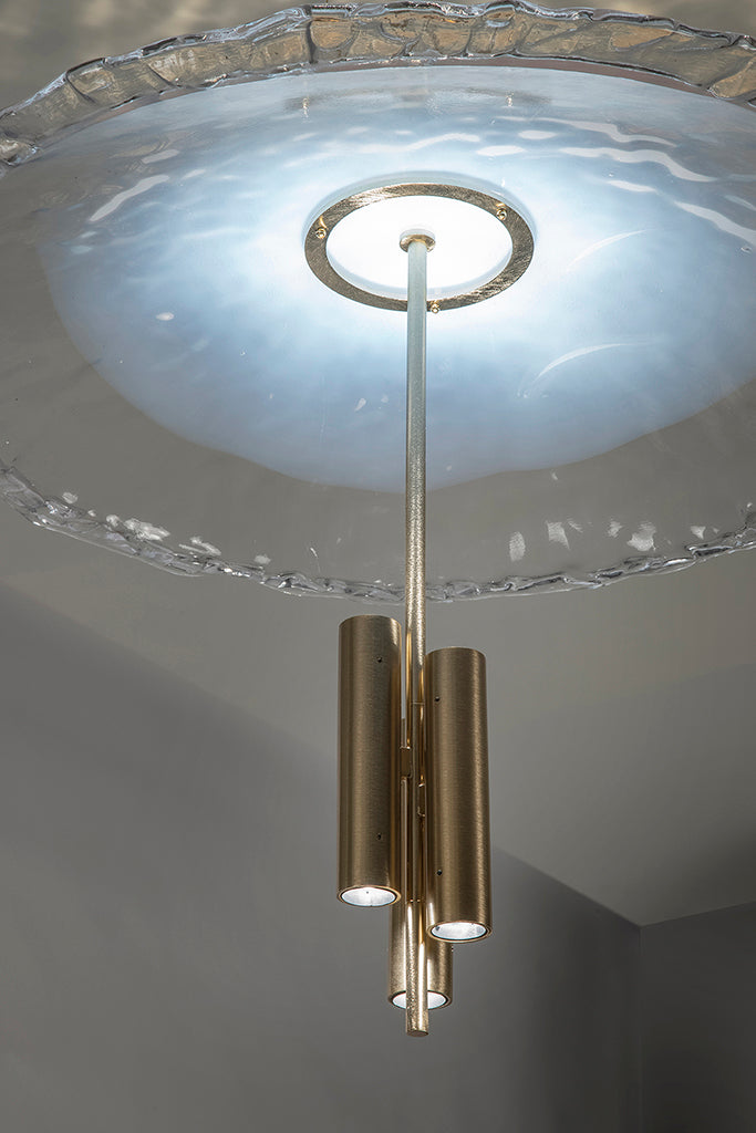 The Crypto collection transforms traditional chandelier form into modern artistry. Using hand-blown glass with irregular surfaces and varying lengths, each fixture is modular—allowing you to compose volumes of light that add movement, depth, and drama to any space. Ideal for creating a statement in a foyer, gallery, or any area where ambient sculpture meets illumination.