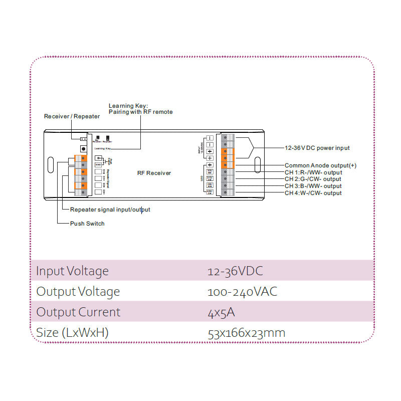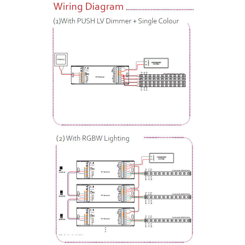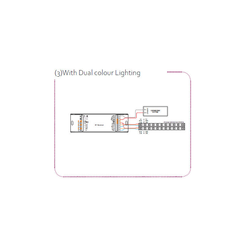 • Full compatibility with a variety of single colour, dual and RGB/RGBW RF remotes