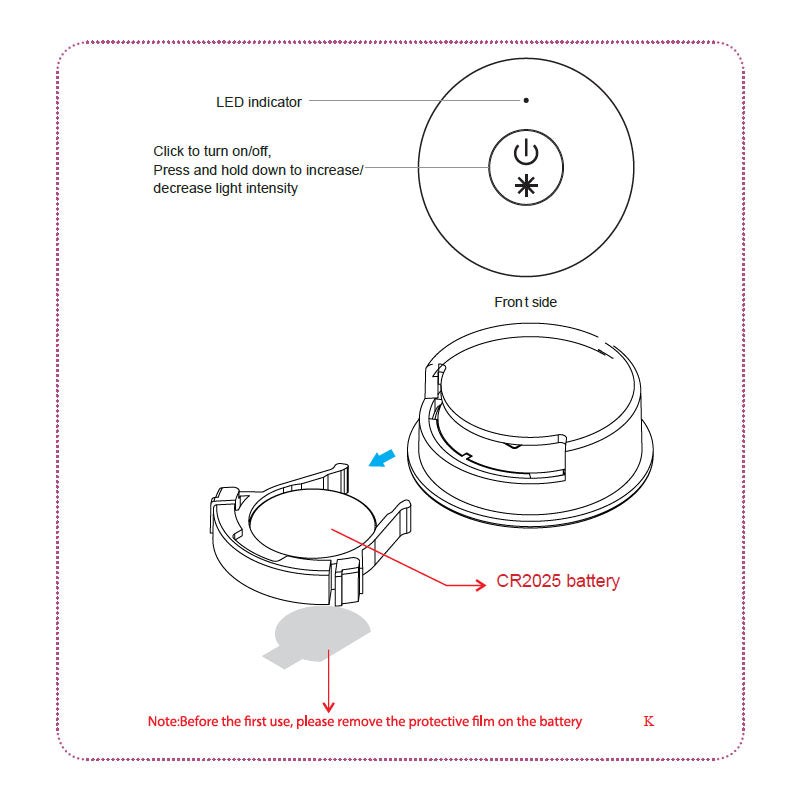 • This device contains a button lithium battery that shall be stored and disposed properly