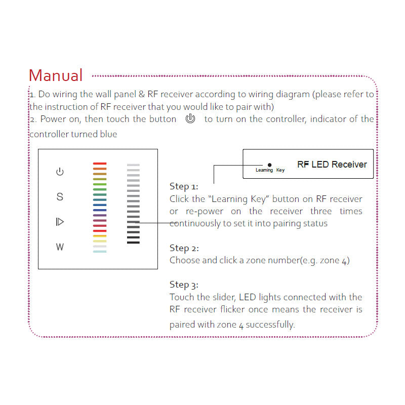 • Control 1 zone of RF receiver