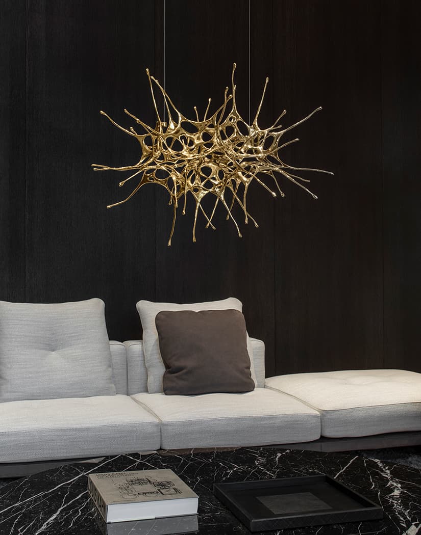 The Dragon pendant light by Terzani is a sculptural masterpiece that redefines luxury lighting. Designed by Dodo Arslan, it draws inspiration from Chinese mythology, where the dragon symbolizes a nature deity central to creation tales. Crafted as a standalone brass sculpture, each piece is cast at a historic foundry in Tuscany, reflecting Terzani's commitment to artisanal excellence. The design features an explosion of liquid metal, tamed by Tuscan master craftsmen, embodying the cyclical dance of the elements and evoking a cosmic harmony. Fully customizable and numbered, the Dragon pendant is a unique addition to any space, uniting both the environment and its inhabitants.